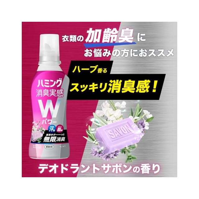 商品名:ハミング 【大容量】消臭実感Wパワー 柔軟剤 着用中ずーっと無限消臭! デオドラントサボンの香り 詰替え 2,600ml