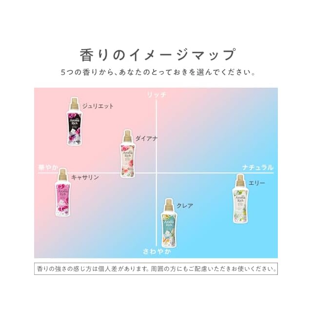 香り:フローラルブーケアロマの香り。華麗に咲くローズやピオニーのフローラルに、フルーツのフレッシュさを加えた、華やかで可憐な奥深い香り