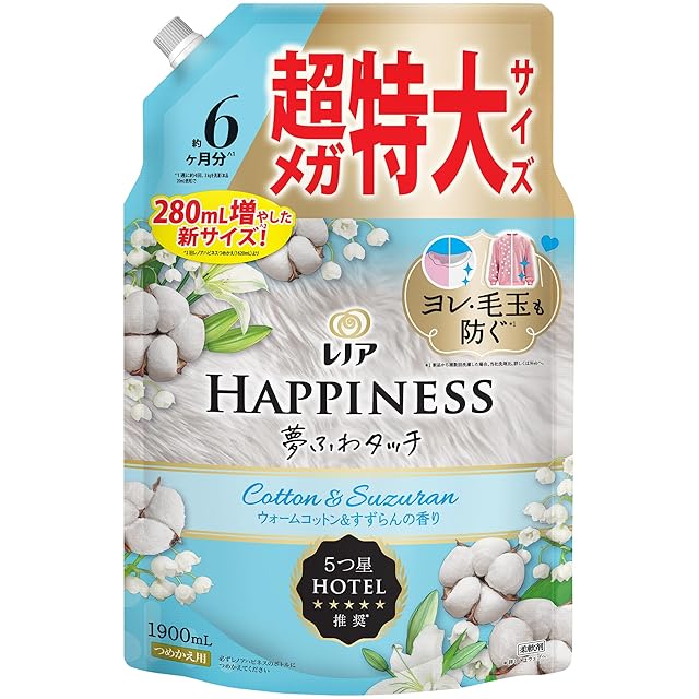 商品名:レノア ハピネス 夢ふわタッチ 柔軟剤 ウォームコットン&すずらんの香り 詰め替え 1900mL