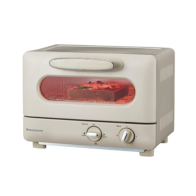 モノクローム(Monochrome) 【.co.jp限定】コイズミ オーブントースター 1000W ヒーター3段階切替 15分タイマー パンくずトレー付き レトロ ホワイト MOS-1028/W