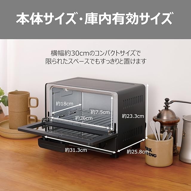 商品名:【.co.jp限定】コイズミ オーブントースター 2枚焼き タイマー30分 温度調節 100~260℃ トレー付き 1000W ブラック KOS-1037/K