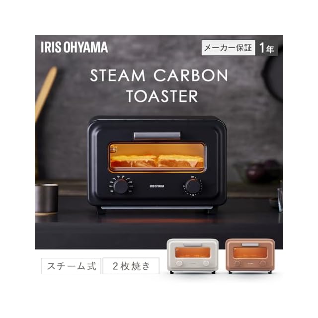 商品名:アイリスオーヤマ オーブントースター 2枚焼き スチーム 瞬間発熱 時短でより美味しく フラットカーボンヒーター使用 温度調節 タイマー SOT-201-B チャコール