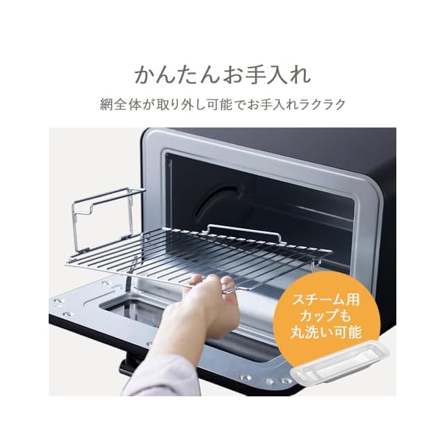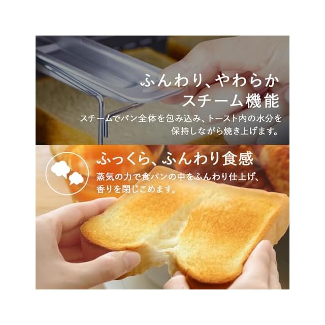 ◆スチーム機能◆付属のスチーム用カップに水を注いでセットするだけの簡単操作!!スチームで全体を包み込むからトースト内の水分を保持しながら焼き上げます。
