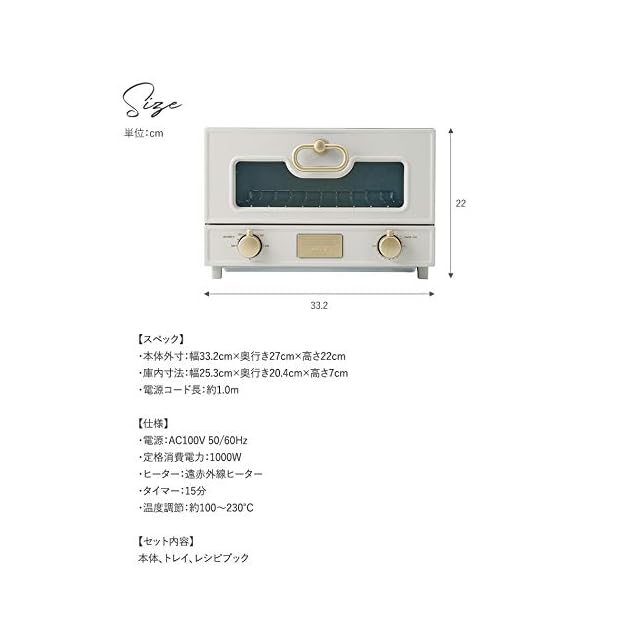 遠赤外線ヒーターでこんがり美味しく!<br /> グリルオーブントースター!<br /><br /> ●100℃~230℃温度調節機能付きで、トーストだけでなく、「あたため」から「こんがり」まで様々なレシピに対応できます。<br /> ●上下の遠赤外線ヒーターはハイパワーな1,000W。<br /> ●キッチンタイマーモード付き!<br /><br /> ◆◆Toffy_PREMIUMシリーズ◆◆<br /> 落ち着いたカラーリングとクラシックなフォルムが特長。<br /> 上質なインテリアとの親和性も高く、スペックにもこだわったプレミアムラインです。<br /><br /> 【商品仕様】<br /> 本体寸法:約332(W)×220(H)×270(D)mm<br /> 庫内寸法:約253(W)×70(H)×204(D)mm<br /> 電源:AC100V 50/60Hz <br /> 定格消費電力:1,000W<br /> ヒーター:遠赤外線ヒーター <br /> タイマー:15分<br /> 温度調節:約100~230℃<br /> 電源コード長:約1.0m<br /> 付属品:トレイ、レシピブック、ユーザーズガイド(書含む)