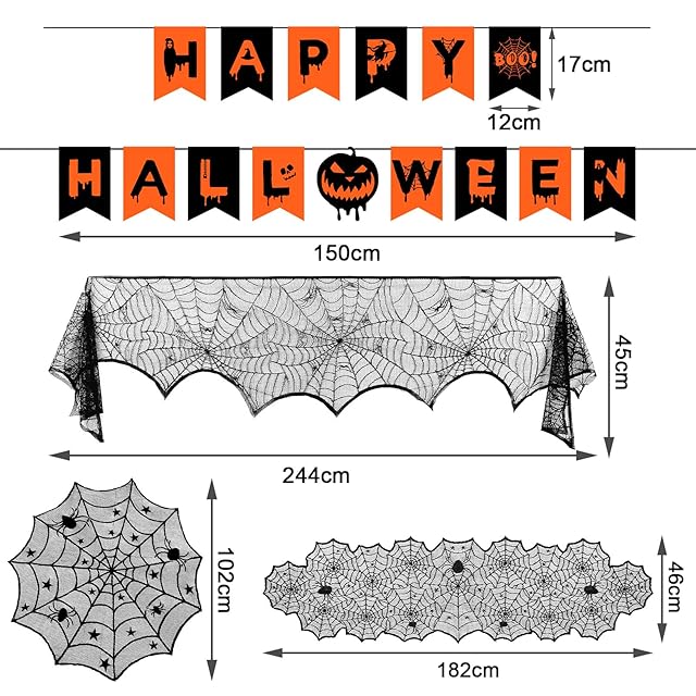 【雰囲気満々のデザイン】これらのテーブルクロスは黒いレース生地を採用し、蜘蛛の巣のようにデザインされました。真っ黒なカラーと不気味な外観で、ハロウィンの雰囲気を盛り上げて、ハロウィン 装飾に欠かせないセットです。