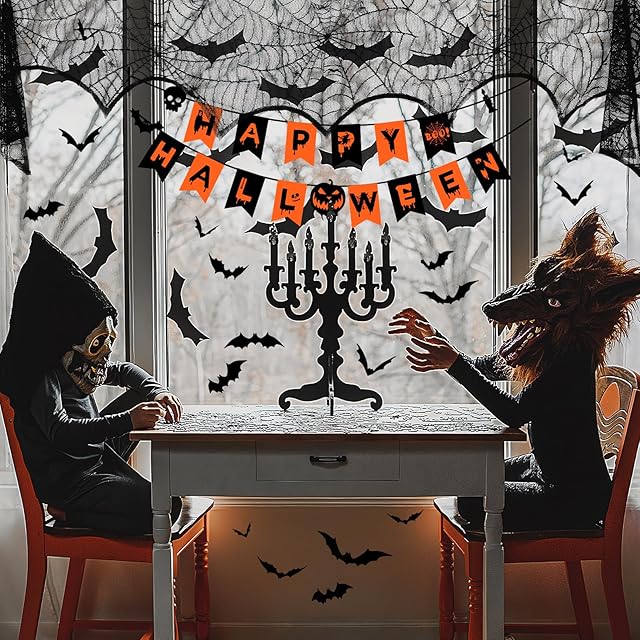 【豊富な内容】パッケージには1枚のハロウィン テーブルクロス、1枚のハロウィン テーブルランナー、1枚のカーテン、1個のハロウィン ガーランド、60枚のハロウィン コウモリ ステッカー があります。セット内容が豊富なので、自宅用のハロウィン 飾りにじゅうぶんです。