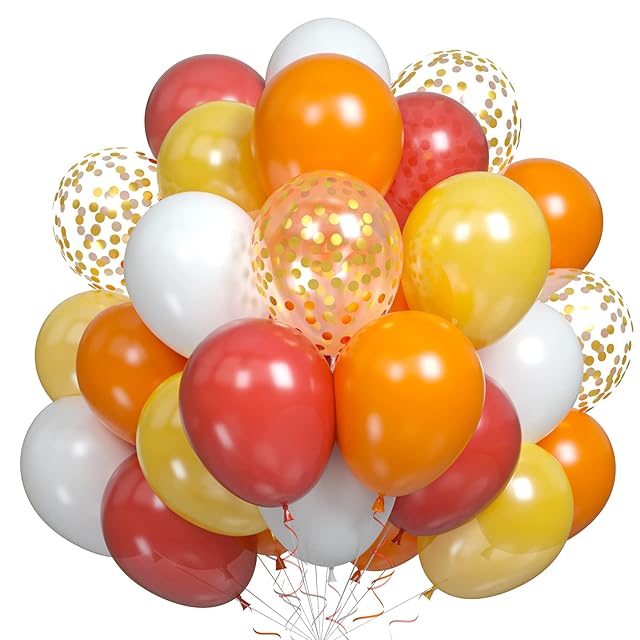 BTZO バルーン 風船 飾り付け 50個入 10インチ ラウンド スタンダードカラー 紙吹雪 ゴム風船 誕生日 感謝祭 秋飾り 季節飾り ハロウィン 結婚式 パーティー お祭り 文化祭 ゴールド オレンジ ホワイト ジュジュビーレッド 5色アソート