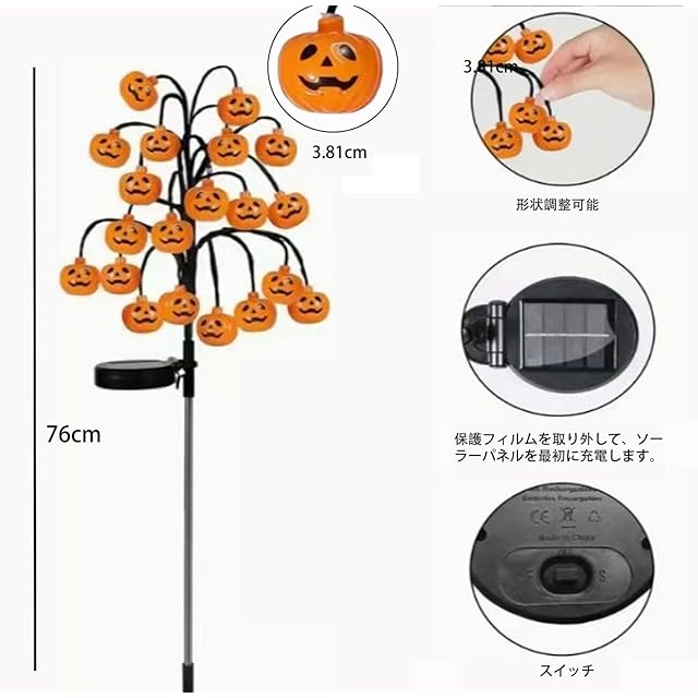 【ソーラーLEDライト】弊社のハロウィン飾りライトはソーラーエネルギーで充電なので、昼間はソーラーパネルが自動充電し、太陽エネルギーを電気に変換して、省エネの上に環境に優しく、電気代0円です!電源場所を気にせず屋外と室内共設置や移動が可能です。