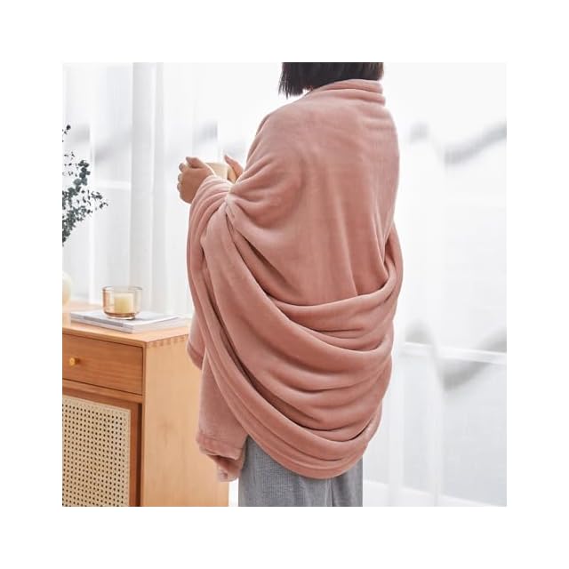 Hansleep 毛布 もうふ ひざ掛け 夏用 ひざかけ 膝掛け ブランケット ハーフケット マイクロファイバー 柔らかく肌触り 暖かい フランネル 洗える 静電防止 四季適用 (70x100,グレーピンク)