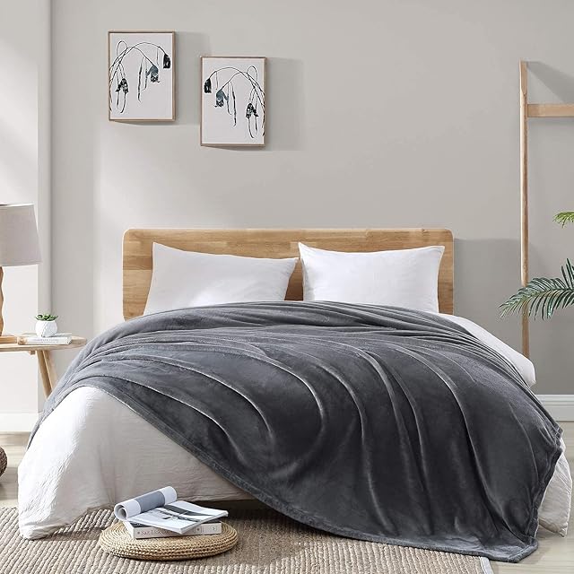 Hansleep 毛布 もうふ ダブル 夏用 ブランケット 大きめ 大判 マイクロファイバー 柔らかく 肌触り フランネル 洗える 軽量 静電防止 四季適用 (180x200,グレー)