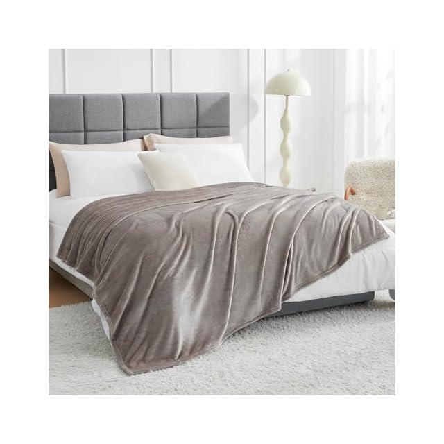 Hansleep 毛布 もうふ 夏用 ダブル ブランケット 大きめ 180x200cm 大判 マイクロファイバー 柔らかく 肌触り フランネル 洗える 軽量 静電防止 四季適用 (180x200,ダーク グレージュ)