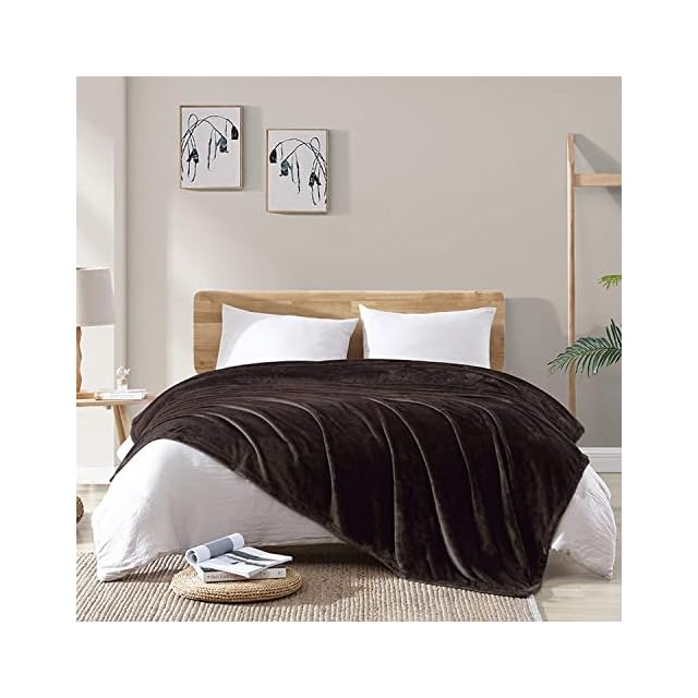 Hansleep 毛布 ダブル 夏用 ブランケット 茶色 大きめ 180x200cm 大判 マイクロファイバー 柔らかく フランネル 洗える 軽量 静電防止 四季適用 (180x200,ブラウン)