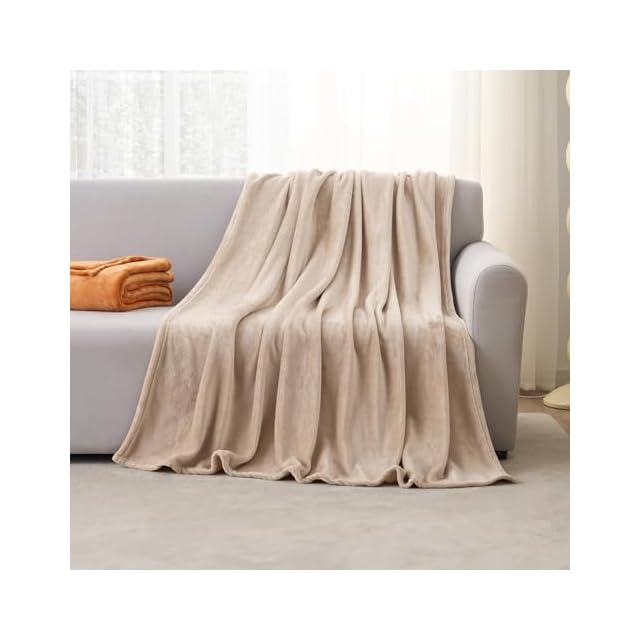 Hansleep 毛布 もうふ ダブル 夏用 ブランケット 大きめ 180x200cm 大判 ライトベージュ マイクロファイバー 柔らかく 肌触り フランネル 洗える 軽量 静電防止 四季適用 (180x200,ライトベージュ)