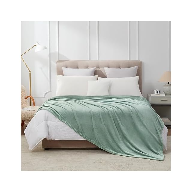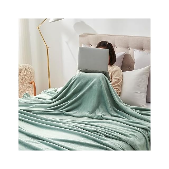 Hansleep 毛布 もうふ 夏用 ダブル ブランケット 大きめ 200x220cm 大判 カルダモングリーン マイクロファイバー 柔らかく 肌触り フランネル 洗える 軽量 静電防止 四季適用 (200x220,カルダモングリーン)