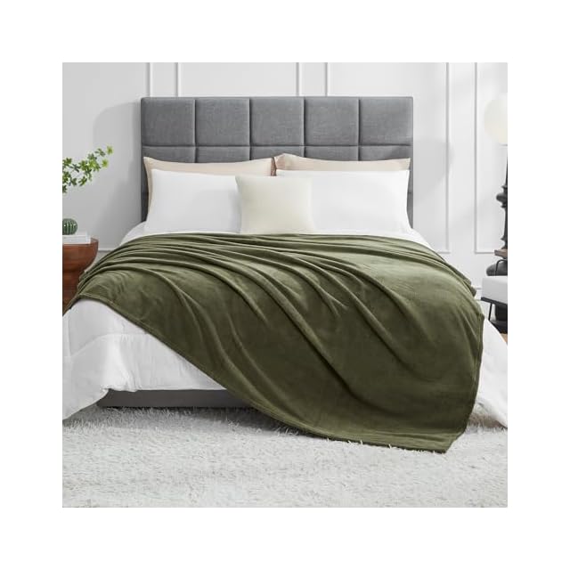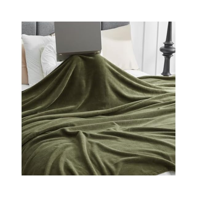 Hansleep 毛布 もうふ 夏用 ダブル ブランケット 大きめ 200x220cm 大判 モスグリーン マイクロファイバー 柔らかく 肌触り フランネル 洗える 軽量 静電防止 四季適用 (200x220,モスグリーン)