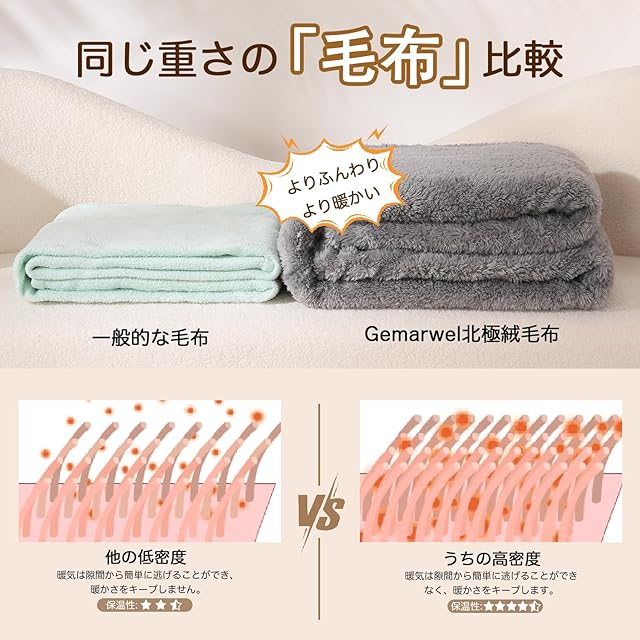 【超極細繊維】当社の毛布の暖かさの秘密は超極細繊維にあります。超極細繊維が高密度で詰まっているので、毛羽は抜けにくいです。ふんわり柔らかく、しっとりとした肌触りに癒され、心も体も温めます。ふわふわで良い肌ざわりの生地で、耐久性に優れています。 【軽量て暖かい】想像以上の柔らかさと軽さ!高い繊維密度で保温性にも優れ、暖かさをしっかりキープしてくれます。適度な厚みで、見た目以上に軽く、持ち運びも簡単です。重い毛布が苦手な方にお勧めです! 【一年中使える】春、夏、秋、冬に問わず、オールシーズンご使用いただけます。無地で、落ち着いた配色、ベッドをすっぽり包むサイズで、ゆったりとご使用いただけます。少し肌寒い季節にはこれ一枚で十分快適。また、布団と併用すれば、冬場も暖かいです。 【多場所適用】敷き毛布、掛け毛布としてはもちろん、ペット用毛布としてもお勧めです。軽くて持ち運びやすく、オフィス、旅行、車内、またキャンプ等のアウトドアにもご活用いただけます。 【注意事项】Gemarwelの商品はすべて日本国内で企画し、厳しい品質を守った上で出来上がり、より安心してご購入いただけます。弊社が示した写真は、出来るだけ実物と同じ色を持ちますが、モニターや部屋の環境により、実際の製品とは色合い、明るさなどの相違がございますのでご了承の上、ご理解お願い致します。弊店は一ヶ月の返品および交換サービスと無料カスタマーサービスを提供することをしています。何かご質問があれば、ご遠慮なく連絡してください。