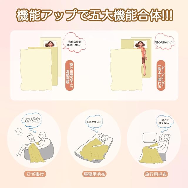 【多場所適用】敷き毛布、掛け毛布としてはもちろん、ペット用毛布としてもお勧めです。軽くて持ち運びやすく、オフィス、旅行、車内、またキャンプ等のアウトドアにもご活用いただけます。
