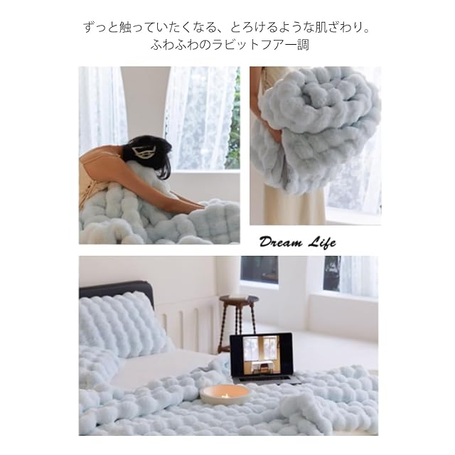 【高品質な素材&二枚合わせ毛布】 VERILADYの毛布はラビットファー風の二枚合わせ仕様で、両面がふわふわな素材。高級感があり、保温性も抜群です。おしゃれなお部屋のアクセントにもなり、寒い冬でも暖かく過ごせるブランケットです。ふんわり柔らかくしっとりとした肌触りで、心も体も温まります。耐久性に優れた生地で、ふわふわな触り心地を長くお楽しみいただけます。