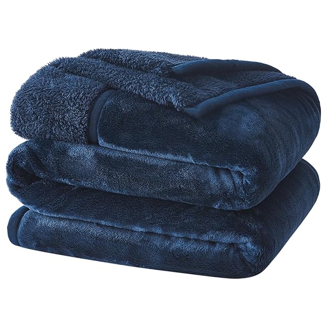 クモリ(Kumori) 2枚合わせ 厚手 毛布 セミダブル 冬用 あったか 中綿入り 襟付き ブランケット フランネル 三層構造 吸湿発熱 もうふ 保温 軽量 ふわとろ 掛け毛布 洗える 毛抜けない 静電気防止 暖かい ボリュームタイプ 合わせ毛布 ネイビー 160X200cm
