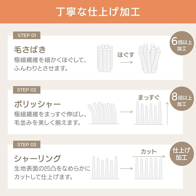 特殊繊維糸と丁寧な加工方法で、とろけるようなタッチ感