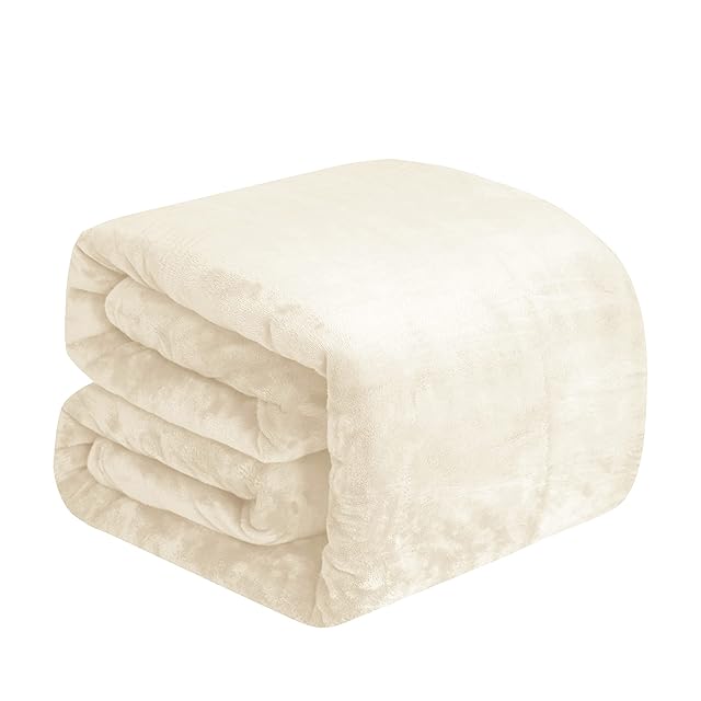BEDELITE 毛布 ダブル 発熱 暖かい マイクロファイバー 毛布 フランネル ブランケット 柔らかい ふわふわ 洗える 180×200cm クリーム