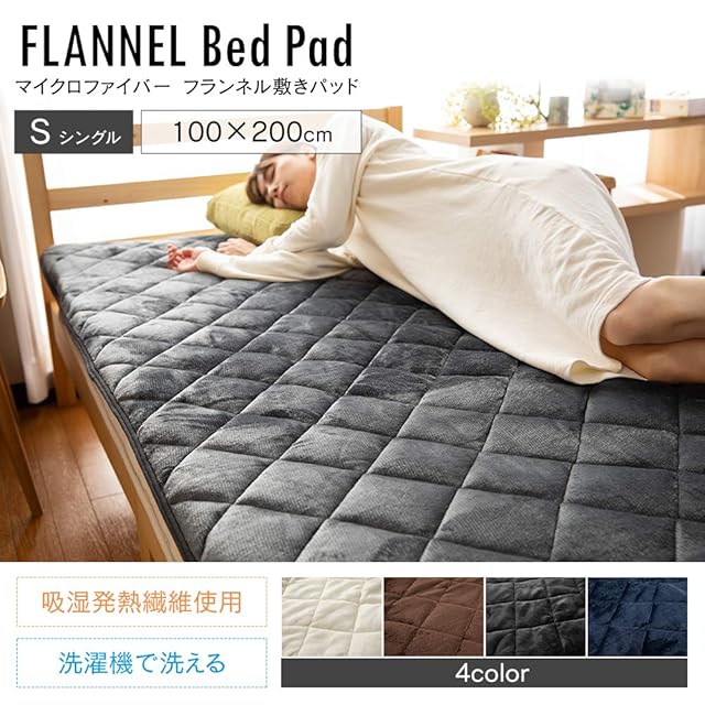 【.co.jp 限定】アイリスプラザ 敷きパッド シングル 吸湿発熱・フランネル素材 丸洗いOK 高密度 ふんわり軽量 四隅ゴムバンド付 100×200cm ブラウン FRPD-S