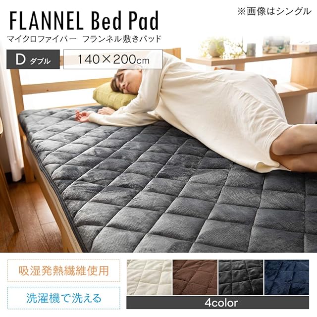 【.co.jp 限定】アイリスプラザ 敷きパッド ダブル 吸湿発熱・フランネル素材 丸洗いOK 高密度 ふんわり軽量 四隅ゴムバンド付 140×200cm ブラウン FRPD-D