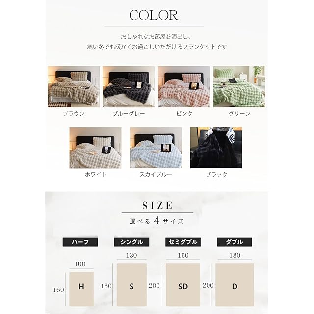 【高品質な素材&二枚合わせ毛布】 VERILADY毛布はラビットファー調二枚合わせ毛布、両面ふわふわ素材、高級感up、保温性が良い!おしゃれなお部屋を演出し、寒い冬でも暖かくお過ごしいただけるブランケットです。ふんわり柔らかく、しっとりとした肌触りに癒され、心も体も温めます。ふわふわで良い肌ざわりの生地で、耐久性に優れています。