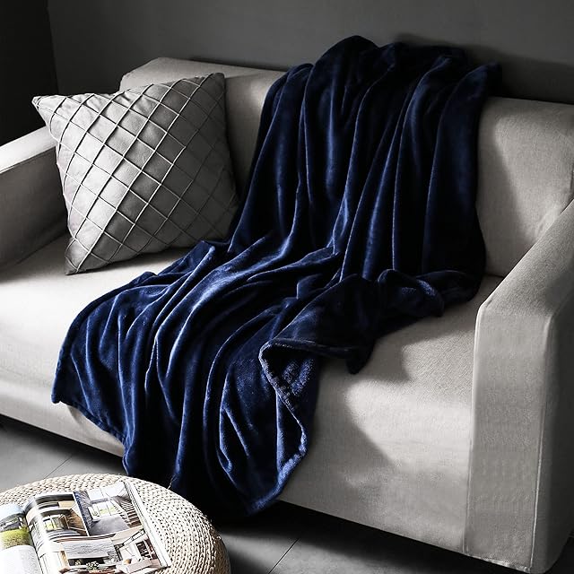 あったか毛布 軽量 もうふ ブランケット 冷房対策 春夏用 オールシーズン 洗える 暖かい ふんわり なめらか 吸湿発熱 マイクロファイバー 柔らかい 静電気防止 ダブル ネイビー