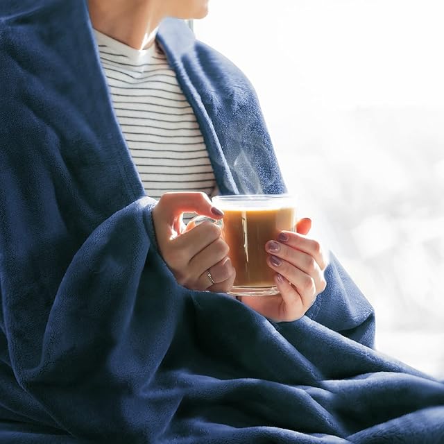 BEDELITE ふわとろ 毛布 あったか 膝掛け ふわふわも静電気防止 ふわふわうふ もこもこ春夏秋冬 柔らかく肌触り 軽量 掛け毛布 洗える(140x200,紺色)