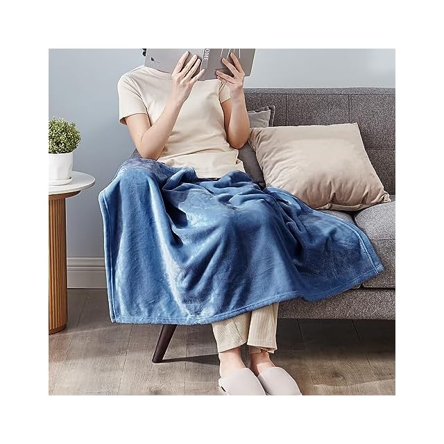 Hansleep 毛布 もうふ ひざ掛け 夏用 ひざかけ 膝掛け ブランケット ハーフケット マイクロファイバー 柔らかく肌触り 暖かい フランネル 洗える 静電防止 四季適用 (70x100,スモッグブルー)