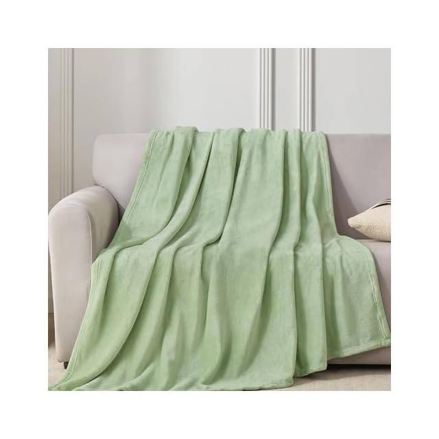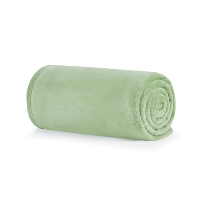Hansleep 毛布 もうふ ひざ掛け 夏用 ひざかけ 膝掛け ブランケット 通気 ハーフケット マイクロファイバー 柔らかく肌触り 暖かい フランネル 洗える 静電防止 四季適用 (70x100,セージグリーン)