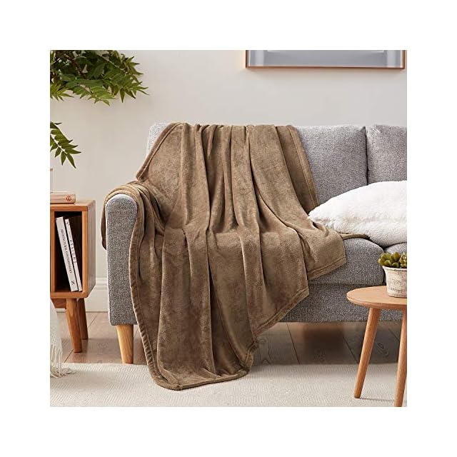 Hansleep 毛布 ダブル 夏用 ブランケット 大きめ 180x200cm 大判 マイクロファイバー 柔らかく肌触り フランネル 洗える 軽量 静電防止 四季適用 (180x200,キャメル)