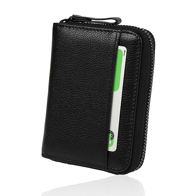 LASIEM[ラシエム] ミニ財布 財布 メンズ 2つ折り コンパクト 本革 「お札を折らずに収納可能」 じゃばら スキミング防止 カードケース 小銭入れ 外ポケット付き レディース (ブラック)