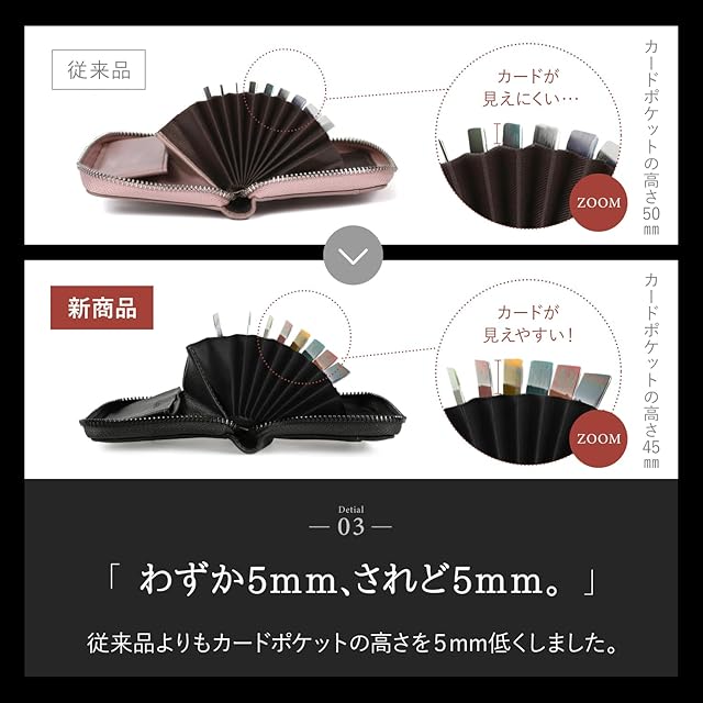 ✅【わずか5mm、されど5mm】従来品よりも カード ポケット の高さを5mm低くしました。お探しの カード も一目瞭然です。