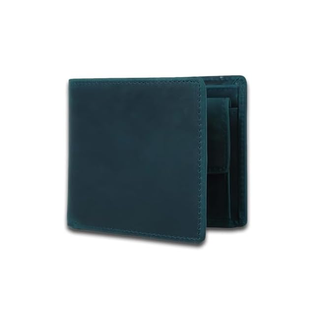 [亀登鞄製作所] 財布 メンズ 2つ折り財布 二つ折り財布 本革 薄型 ( 経年変化を楽しむ逸品 ) コンパクト 大容量 革 小銭入れ 薄い かさばらない カード ミニ財布 小さい 軽い 軽量 レザー (ブルー)
