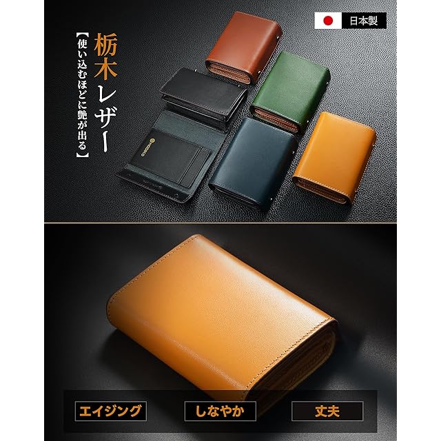 『匠の技が光るメンズ財布』伝統の日本製栃木レザーを贅沢に採用した、耐久性と品格の融合。一つ一つの製品は、職人の手によって丹念に仕上げられ、日本の伝統工芸の精神が息づいています。この栃木レザーの質感は、高級感を漂わせ、使用するたびに日本の匠の技が感じられる逸品です。
