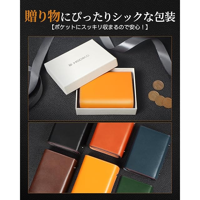 商品名:Modiko 財布 メンズ 2つ折り 栃木レザー 本革 ミニ 日本製 二つ折り財布 大容量 箱型の小銭入れ 小さい財布 コンパクト 箱状 左利き 右利き 父の日 誕生日 (イエロー)