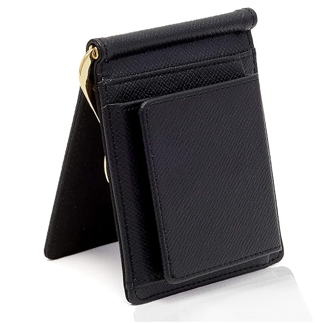 [GRAV] マネークリップ 小銭入れ付き メンズ 財布 二つ折り 革(ICカードポケット 隠しポケット付き) (ブラック/ブラック)
