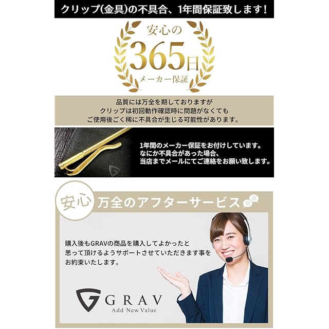 ✅【 GRAVは日本ブランド 】商品到着後の初期不良はもちろんのことイメージ違いなどについても、ご購入から30日以内の場合全額返金あるいは無料交換にて対応させていただきます。また、クリップ(金具)にはメーカー1年がついております。 GRAVではアフターサービスにも力を入れておりますので、商品使用後でありましてもお困りの事がありましたらお気軽にお問い合わせください。