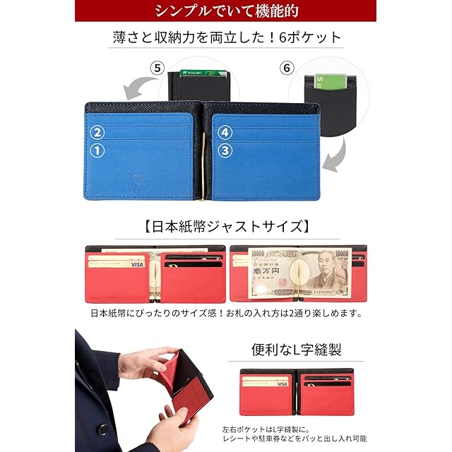 ✅【 サイズ×素材 】サイズ:縦88mm、横115mm、厚さ17mm 日本紙幣ジャストサイズ!海外製品には日本紙幣に対応していない規格もありますのでお気をつけ下さい。 素材:高品質PUレザー カードポケット部分はimitation microfiberを採用!カードの出し入れのしやすさを改善いたしました。 仕様:内側 カード入れ×4、外側 ICカード入れ×1、隠しポケット×1 BOX型小銭入れ付き 素材と色のコントラストが高級感をさらにUP! ワンランク上の存在感を醸し出す マネークリップとなっております。