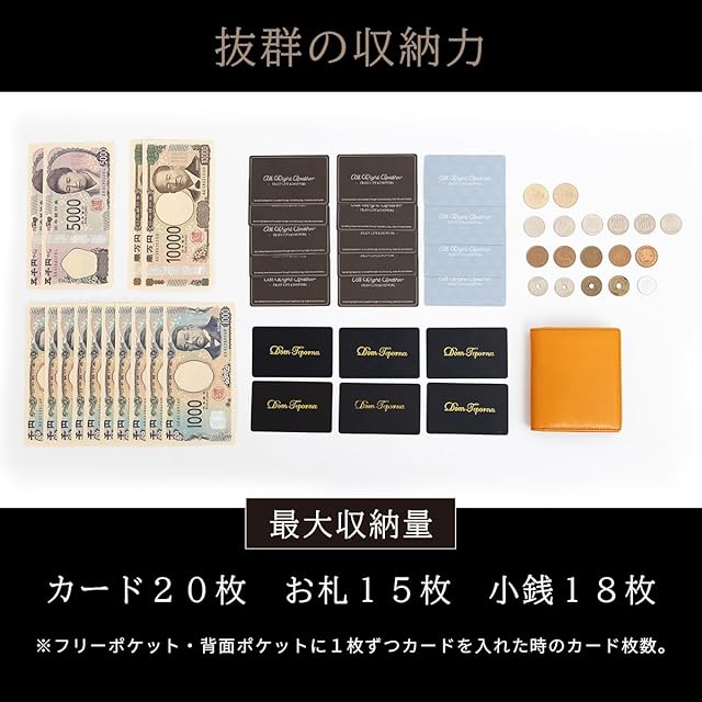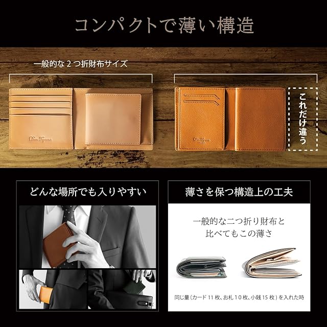 【コンパクトでもしっかり大容量】 一般的な二つ折り財布よりもひと回り小さいコンパクトボディに「充実の収納力」と「使い勝手の良さ」を兼ね備えた大人の財布。 計6か所のカードポケットで18枚のカードを収納可能です(1ポケット3枚まで)。 ※推奨枚数のカードを収納した場合、厚みが出やすくなりますのであらかじめご了承ください。 アクセスしやすいボックス型小銭入れと大きく開くお札入れで、支払いもスマートに。外ポケットは駐車券や領収証などの一時保管に便利。 長財布から二つ折り財布に買い替えを検討されている方にもおすすめのコンパクト財布です。