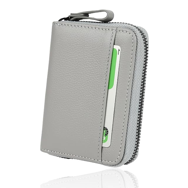LASIEM[ラシエム] ミニ財布 財布 メンズ 2つ折り コンパクト 本革 「お札を折らずに収納可能」 じゃばら スキミング防止 カードケース 小銭入れ 外ポケット付き レディース (ライトグレー)