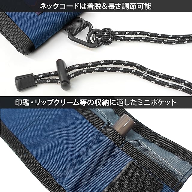 ネックストラップ脱着可能、ストッパーで長さ調節可能