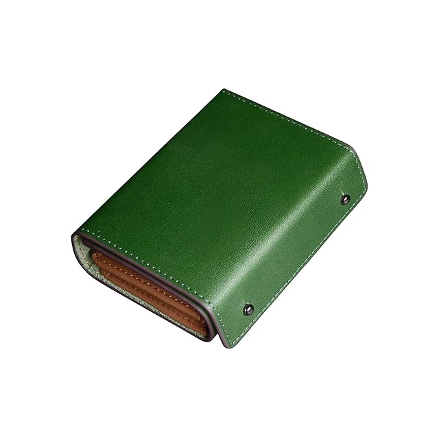 Modiko 財布 メンズ 2つ折り 栃木レザー 本革 ミニ 日本製 二つ折り財布 大容量 箱型の小銭入れ 小さい財布 コンパクト 箱状 左利き 右利き 父の日 誕生日 (グリーン)