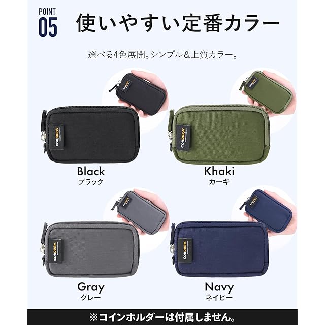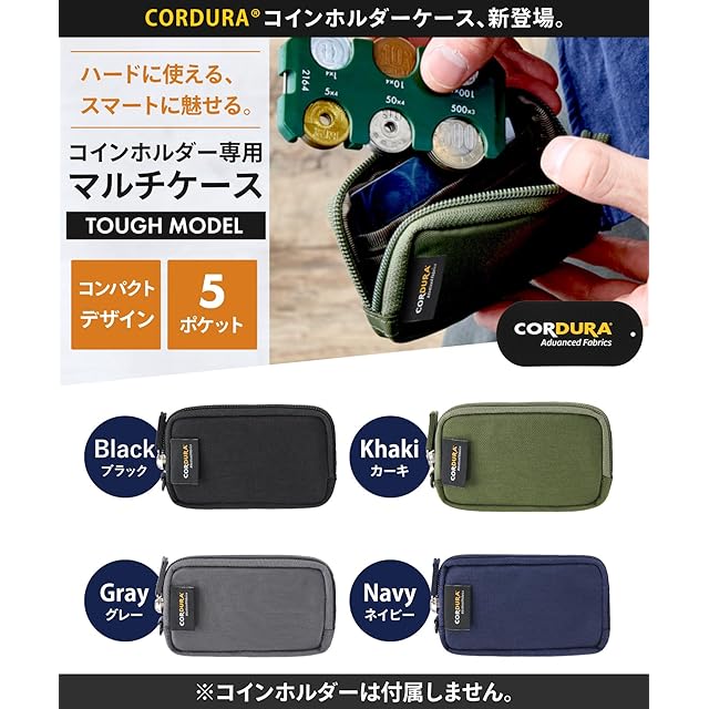【コインホルダーに最適】コインホルダーがすっぽりと入り、クレジットカードや追加の硬貨も収納できます。 STREAMコインホルダーを始め、他社製品もしっかりと収納可能!コンパクトなお財布としても活躍します。 【コインが飛び出ない】内側で小銭が飛び出さないように、コイン飛び出し防止用のフチを作りました。お釣りを多く受け取った時でも安心してお使いいただけます。 【豊富な収納スペース】4つのポケットが付いているため、使い方は様々です!例えば、小さなお財布として使用したり、ワイヤレスイヤホンのケースとして利用したり、充電ケーブルや車のスマートキーを収納したりすることができます。幅広い用途で活躍する便利なアイテムです。 【スペック】サイズ:11.5cm×7cm×1.8cm 重量:29g素材:ナイロン 仕様:内側ポケット×4(コインホルダー使用時は最大5枚のカードが収納可) カラーバリエーション:ブラック・ネイビー・グレー・カーキ 【シーン】このマルチポーチは、そのシンプルなデザインのおかげで、ビジネスの出張や日常の使い勝手にもぴったりです。複数のポケットや収納スペースがあり、荷物の整理整頓も簡単です。また、アウトドアや旅行にも安心して持参できます。さまざまなシーンで活躍する便利なアイテムです。