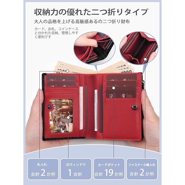 【ポイント2-大容量で、収納抜群】:カード、お札、コインケースと分かれた収納は、 クレジットカードや領収書などがしっかり入り、管理しやすく便利です。L字型ファスナー式小銭入れで、コインの出し入れはしやすいです。