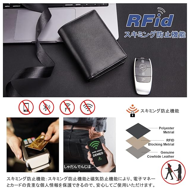 【ポイント4-スキミング防止機能】:スキミング防止機能と磁気防止機能により、電子マネーとカードの貴重な個人情報を保護できるので、安心してご使用いただけます。財布専用箱が付きますので、プレゼントにも最適です!