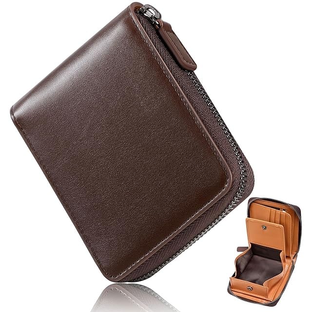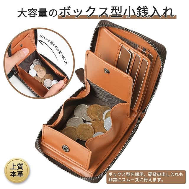 [GSG] 財布 メンズ 2つ折り さいふ コンパクト ミニ財布 ブランド 男子 折り畳み 人気ランキング 小さい財布 カードたくさん ラウンドファスナー 使いやすい BOX型小銭入れ プレゼント用 ギフト 箱入り 折りたたみ 男性用 コーヒー+ブラウン 24022