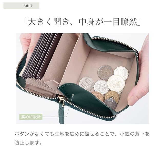 [RafiCaro] ミニ財布 お札が折れない 財布 レディース メンズ 二つ折り財布 大容量 じゃばら カードケース ボックス型 小銭入れ YKKファスナー 牛革 小さい財布 グリーン